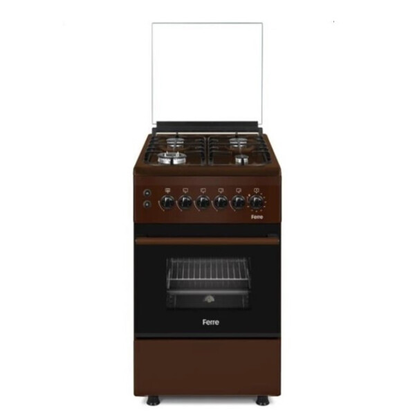 Газовая плита Ferre S5603E в коричневом корпусе из эмалированной стали обладает компактными размерами, что позволяет разместить ее на кухне самых маленьких размеров, включая дачную. При этом на поверхности для готовки имеются 4 конфорки, а под ней духовой шкаф объемом 50 л с опцией газ-контроля.