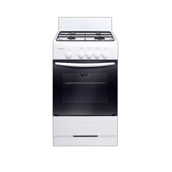 Газовая плита с шириной 50 см будет отлично смотреться на любой кухне. Поверхность плиты изготовлена из белой кислоустойчивой эмалированной стали, которая легко чистится от попавшего жира. Для регулировки мощности подачи газа предусмотрены механические переключатели. На дне плиты расположен встроенный ящик с откидной крышкой, предназначенный для хранения посуды.