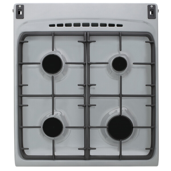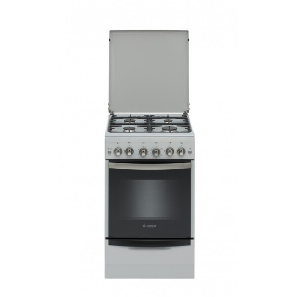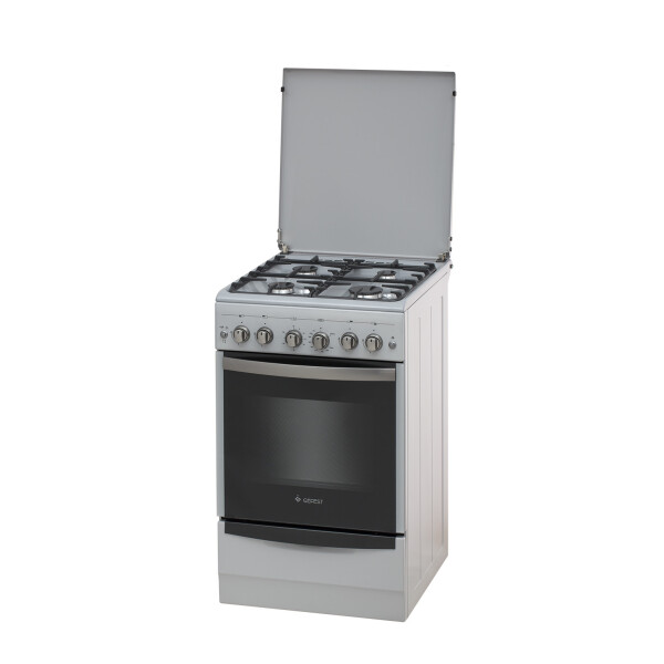 Газовая плита GEFEST 5100-02 0068 с эффектным серебристым корпусом оснащена четырьмя газовыми конфорками и объемной 52-литровой духовкой с вращающимся вертелом для жарки мяса. Конфорки данной модели размещены на варочной поверхности из эмалированной стали и оборудованы съемными решетками-держателями. Для розжига газа в духовке и конфорках предусмотрена система электроподжига с 6 пьезоэлементами, которые срабатывают при нажатии кнопки на панели управления.