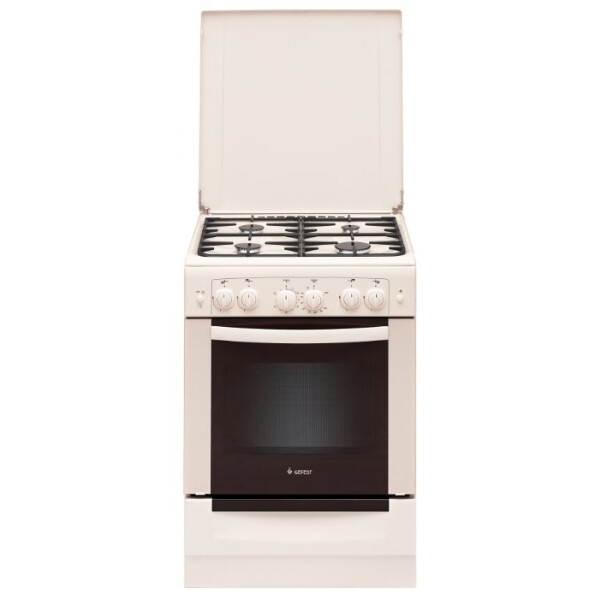 Газовая плита Gefest 6100-02 0067 имеет металлический корпус приятного бежевого цвета и классический дизайн газовой плиты для домашней кухни. Конфорки данной модели в количестве четырех штук располагаются на варочной поверхности из эмалированной стали и различаются рабочей мощностью. Управление плитой реализовано с помощью практичных поворотных переключателей на передней панели, где находится и клавиша активации электроподжига газа в конфорках и 52-литровой духовке.