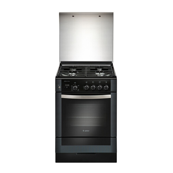 Газовая плита Gefest 6300-03 0046 обладает модным и стильным корпусом из черной эмалированной стали. Представленная плита оснащена дисплеем и поворотными утапливаемыми переключателями для управления. Также в ее функционал входят электронный таймер и часы. На варочной поверхности плиты расположена чугунная решетка для установки посуды и 4 газовых конфорки. Модель может работать как от природного, так и от сжиженного газа. Плита оснащена опцией электроподжига, благодаря чему вам не придется держать на кухне спички и зажигалки. Дополнительно достоинство представленной модели наличие опции газ-контроля. Если сквозняк задует пламя горелки, подача газа к ней автоматически прекратится. Варочная панель плиты дополнена стеклянной крышкой.