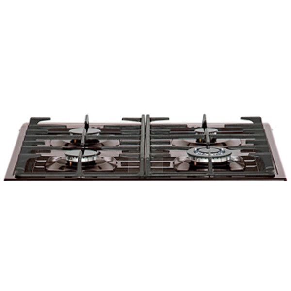 Варочная поверхность - стеклянная, на ней установлены фигурные чугунные решетки, можно пользоваться тяжелой посудой. Четыре конфорки с плавной регулировкой мощности и фиксированным положением малое пламя, две стандартные дополнены мощной, с быстрым нагревом и горелкой небольшого диаметра, экономичной.