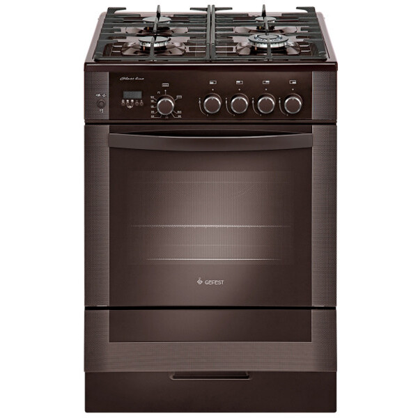 Газовая плита шириной 60 см, в коричневом цвете со стеклянным фасадом. Современный дизайн, отлично вписывается в обстановку кухни. Комфорт использования и безопасность - все газовые горелки с автоматическим электроподжигом и газ-контролем. Электронный таймер функционирует как часы, будильник с подачей звукового сигнала об окончании заданного времени, можно выставить отключение горелки рабочего стола и духовки.