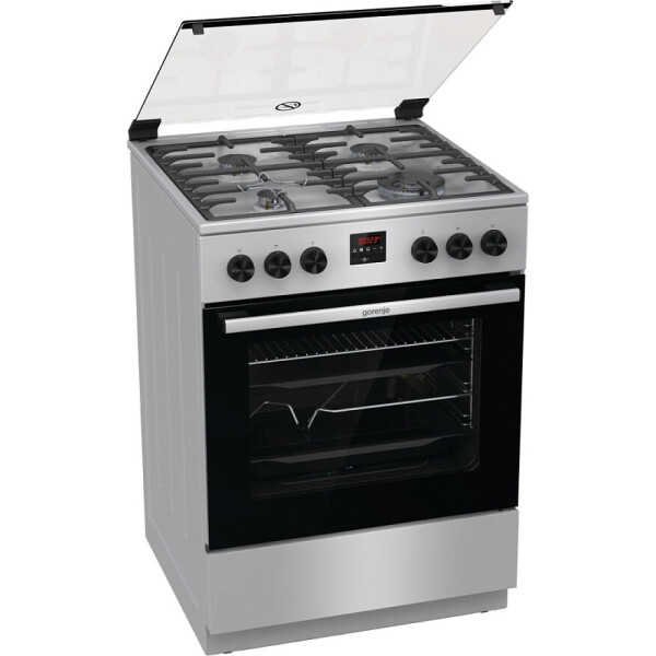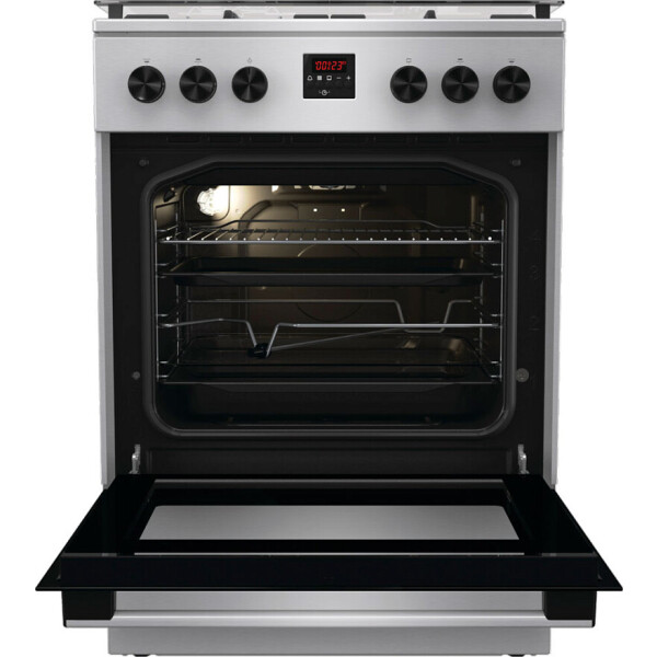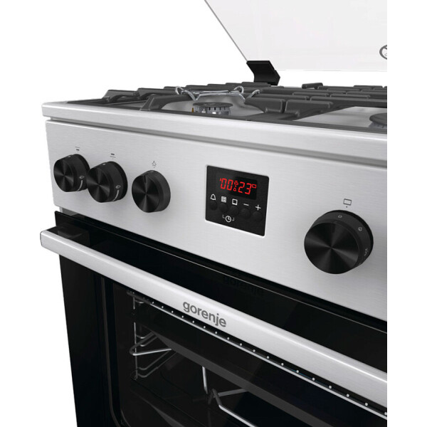 Газовая плита Gorenje GGI6C20XA надежная модель с простым механическим управлением. Рабочая поверхность из нержавеющей стали и чугунные держатели для посуды. Встроенный электронный газовый программатор, система электроподжига конфорок и духовки делает использование удобным и безопасным.