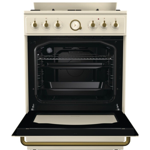 Газовая плита Gorenje GI 62 CLI из коллекции Classico оборудована духовкой со сводчатым потолком HomeMade. Поворотные переключатели с электроподжигом повышают комфорт эксплуатации. Дверца с двойным стеклом и термослоем эффективно удерживает тепло внутри камеры. Гриль расширяет возможности приготовления. Благодаря системе очистки паром AquaClean загрязнения размягчаются и уход за духовкой становится простым.