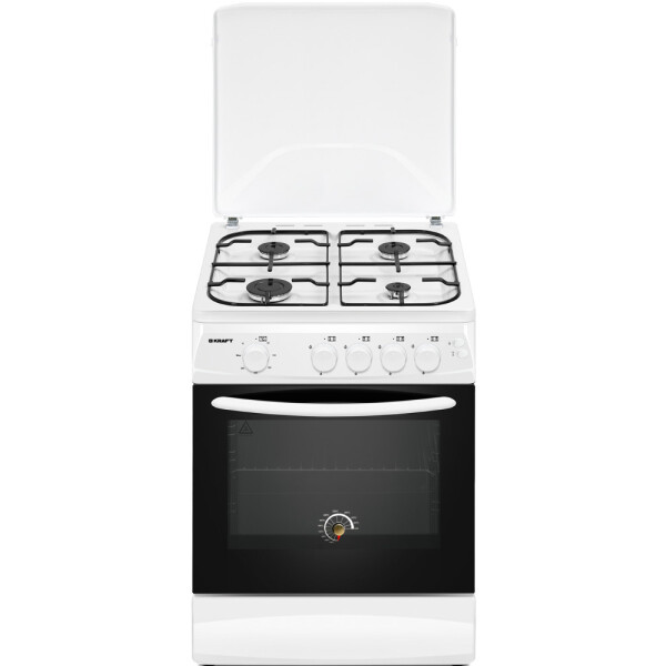 Газовая плита Kraft сочетает в себе функциональный дизайн выполненный в белом цвете и простоту управления. Данная модель оборудована четырьмя газовыми конфорками с функцией автоподжига и газовым духовым шкафом объемом 70 литров оснащенным системой газ-контроля и внутренней подсветкой.