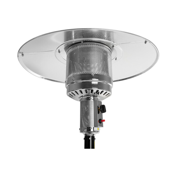 При температуре воздуха + 10 градусов он способен подогреть температуру до +25 градусов. Газовый обогреватель оснащен регулятором мощности, который позволяет регулировать расход газа. В стандартной комплектации предусмотрена защита от опрокидывания, датчик контроля пламени горелки, отсутствие пламени и перегрева. Редуктор и шланг для подключения к баллону сжиженного газа в стандартной комплектации. Стильный дизайн и удобство использования делают уличный газовый обогреватель незаменимым атрибутом при проведение различных мероприятий, праздников и торжеств на открытом воздухе.
