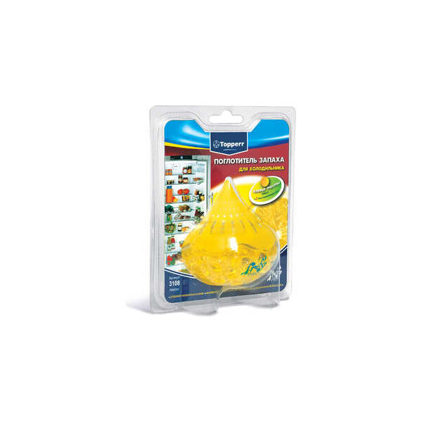 Поглотитель запахов Topperr 3111 – эффективное средство с ароматом апельсина, которое активно удаляет различные неприятные запахи, образовывающиеся в холодильнике. Аксессуар обладает гелевой структурой, а изготовлен он из безопасных углеродных, а также минеральных адсорбентов. Поглотитель не вредит холодильнику и способен устранить неприятные запахи от: лука, рыбы, сыра, либо чеснока.