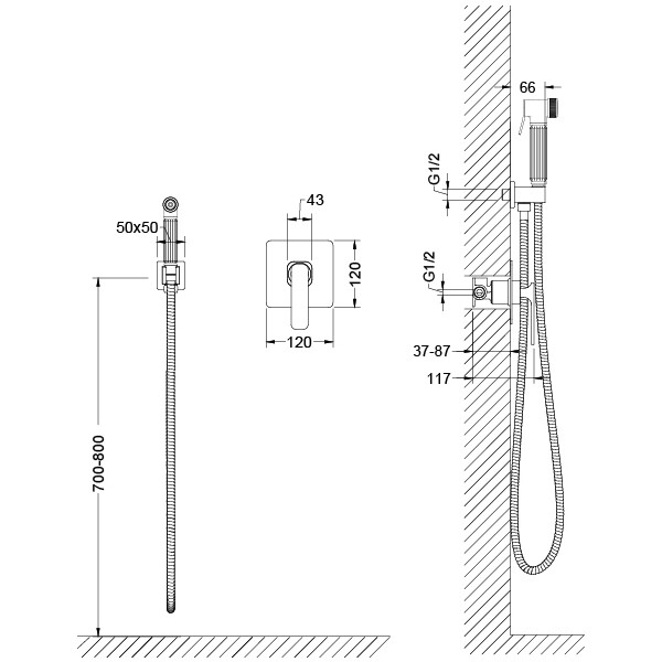 отвод из стены / держатель лейки (латунный) - 1 шт.;