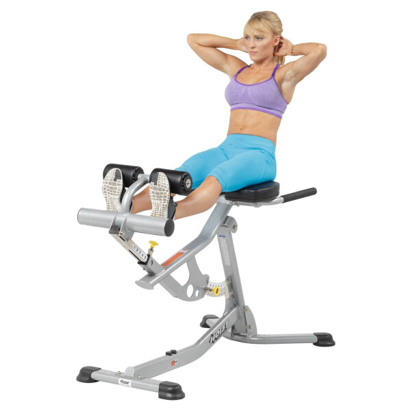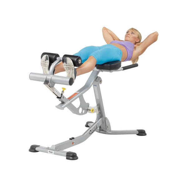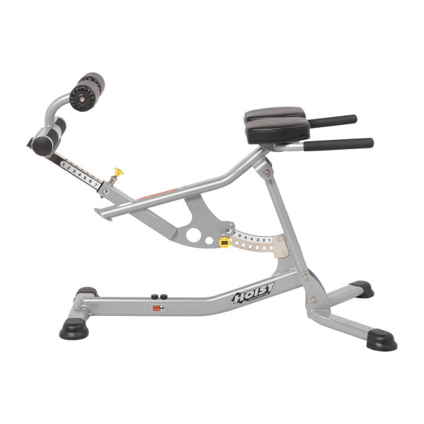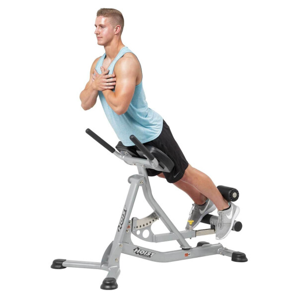 Мультифункциональная скамья HF-5664 бренда Hoist регулируется от гиперэкстензии с наклоном в 35 до полноценного римского стула, позволяя качественно прорабатывать пресс, мышцы нижней части спины, бедра, а также ягодичные мышцы. Тренажер подходит как новичкам, так и профессиональным спортсменам. Благодаря компактным размерам он не занимает много места, что позволяет рационально использовать площадь помещения, что особенно удобно для небольших тренажерных залов.