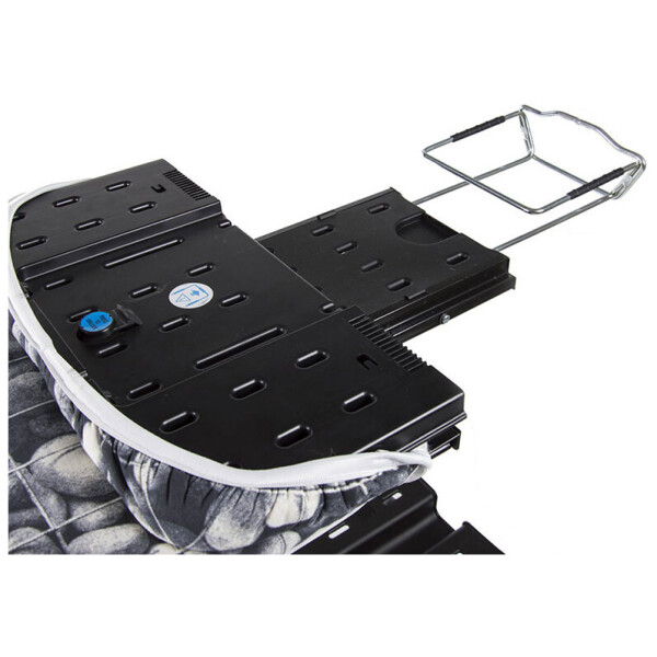 Подставка для утюга выдвижная, изготовлена из стали. Дополнительно предусмотрена подставка из вспененного пластика для паровой станции.