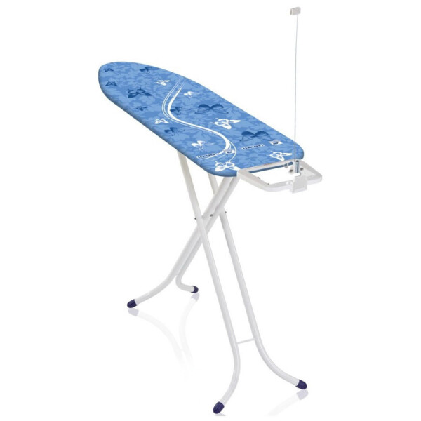 Опирается рабочая поверхность на высокопрочную раму, которая обладает превосходной устойчивостью даже на недостаточно ровных полах. Пользователь имеет возможность легко и быстро изменить высоту положения доски до 88 см (высота до нижней кромки гладильной поверхности).