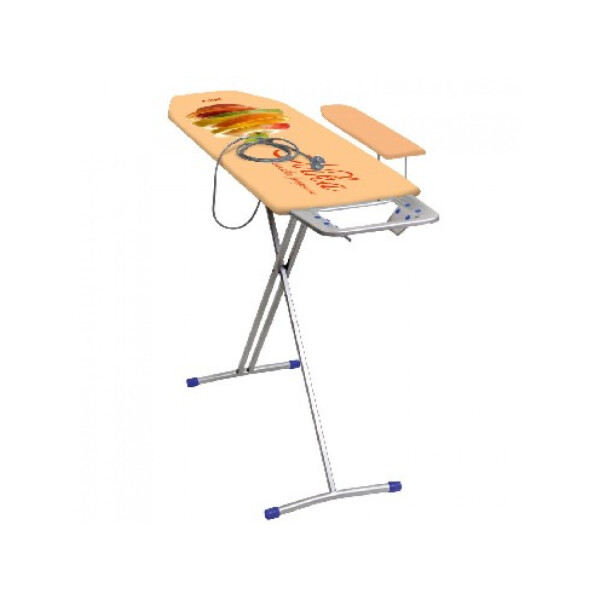 Гладильная поверхность - фанера (1225х345мм), два положения высоты h-70м, h-85 см, EUROподставка под утюг с термостойким силиконом, съемный подрукавник, электросоединитель 2,2м, розетка, материал чехла-хлопок, max нагрузка на глад.поверхность 15кг, вес изделия-6,2кг. Индивидуальная термоупаковка.