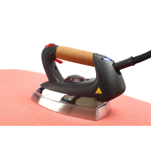 Подошва профессионального утюга сделана из сверхпрочного алюминиевого сплава с антипригарным покрытием. Пробковая ручка предотвращает выскальзывание утюга из руки (в отличие от пластиковых деталей) и не нагревается. Приятное дополнение к утюгу – фторопластовая насадка, созданная специально для чувствительных тканей.