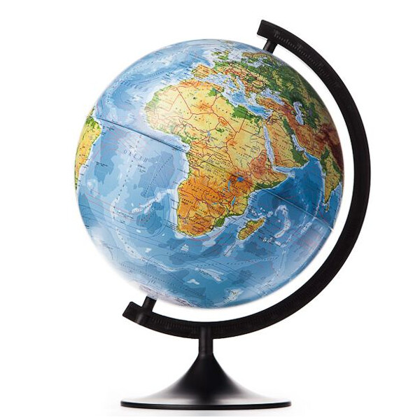 Крупный физический глобус диаметром 320 миллиметров — отличный выбор как для домашнего использования, так и для школ и других учебных заведений. Рельеф земного шара обозначен яркими цветами — зеленые равнины, желтые пустыни, коричневые высокогорья, все это представлено взору вашего ребенка. Большой размер глобуса позволяет легко разглядеть реки, озера и острова. Купив глобус домой, вы убедитесь, что ребенок проявит к нему интерес, будет изучать и сравнивать пустынную Аравию и джунгли Амазонки. Со временем он запомнит, какие места на планете покрыты лесами, а какие представляют собой непроходимые горные массивы. Такие знания необходимы и для успешной учебы, и для того, чтобы в прямом смысле найти свое место в мире.
