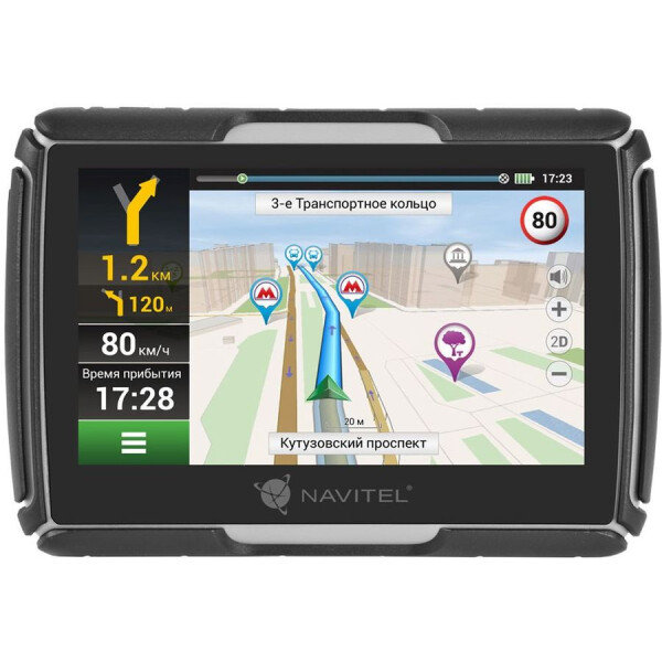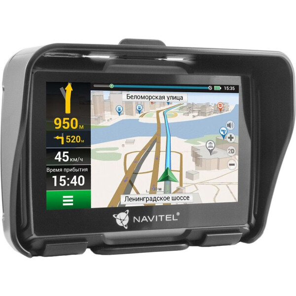 TFT-экран устройства обладает разрешением 480x272 и диагональю 4.3 дюйма. Также к достоинствам модели относится опция голосового оповещения. GPS-навигатор NAVITEL G550 Moto имеет разъем miniUSB, слот для карты памяти microSD и беспроводной интерфейс Bluetooth. Использовать навигатор можно как в автомобиле, так и на мотоцикле. Для этого устройство укомплектовано мотоциклетным креплением и зарядным устройством, автомобильным креплением и зарядным устройством, док-станцией, USB-кабелем и пластиковым пинцетом.