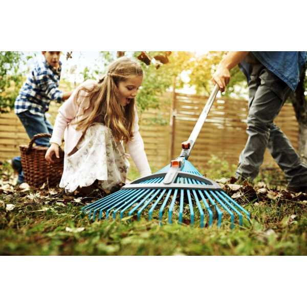 Комплект: пластиковые регулируемые грабли + алюминиевая ручка 130см GARDENA 03099-30.000.00 используется на приусадебном участке и существенно облегчают работу по сбору листьев, скошенной травы, а также мелкого и крупного садового мусора.