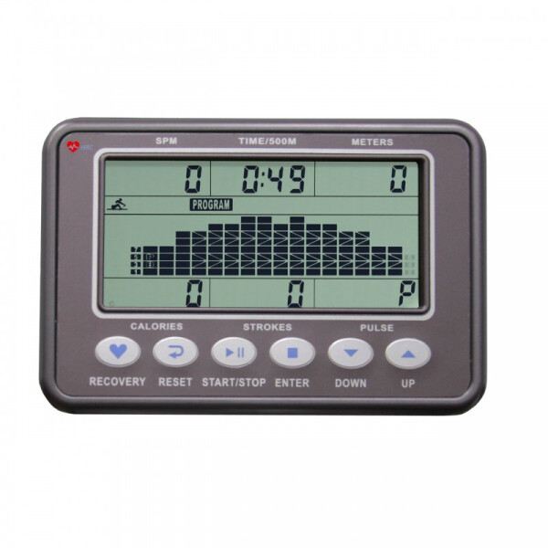 Многофункциональная консоль выводит на экран все основные параметры тренировки. Максимальный вес пользователя 130 кг. Тренировочный компьютер представлен многофункциональным черно-белым LCD дисплеем размером 5.5 дюйма (14 см.). В программный пакет входят 12 предустановленных программ, направленных на тренировку скоростных качеств, выносливости, укрепления сердечно-сосудистой системы и похудания. Помимо предустановленных программ, можно воспользоваться самостоятельно регулируемым ручным режимом, создать собственную программу или поучаствовать в соревновании с виртуальным соперником. Для тренировок с контролем пульса существуют пульсозависимая программа. Для точного определения пульса и просто комфортной тренировки в компьютер встроен беспроводной приемник (нагрудный ремень-передатчик приобретается отдельно).