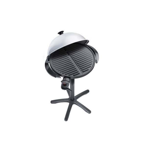 Рабочая поверхность гриля Ø 40 см. Плавный регулятор температуры для получения оптимальных результатов жарки. Функция снижения количества жира: Жидкость, образующаяся при жарке, стекает в поддон. Высокая температура гриля и быстрый нагрев благодаря встроенному нагревательному элементу. Легкая мойка благодаря съемным пластинам гриля с агтипригарным покрытием. Термоизолированные ручки. Функция настольного гриля. Устойчивый, легко снимаемый штатив. Сигнальная лампочка температуры. Благодаря наличию крышки продукты в гриле получаются нежными, не пересыхают, образуют аппетитную корочку. Наилучшим образом сохраняются собственный вкус продукта, его ингредиенты и форма.