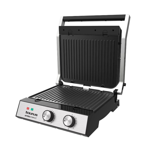 Гриль Taurus Asteria Complet мощностью 2000 Вт оснащен нагревательным элементом закрытого типа, расположенным с 2 сторон. Размер панели составляет 29x23 см. Предусмотрены индикаторы нагрева и работы. Ручка устройства защищена от нагревания.