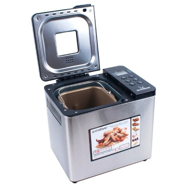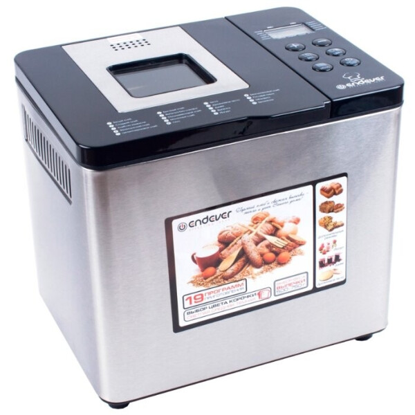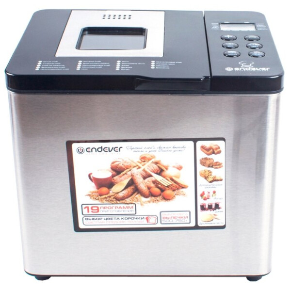 Хлебопечь Endever Skyline MB-54 представлена в стильном дизайне и имеет привлекательную серебристую расцветку. Оборудование действует с мощностью 750 Вт, весит 5.8 кг и обладает габаритами 37x34x30 см. Допускается выпечка буханки хлеба весом до 0.75 кг. Предусматривается возможность регулирования веса и выбора цвета корочки хлеба.