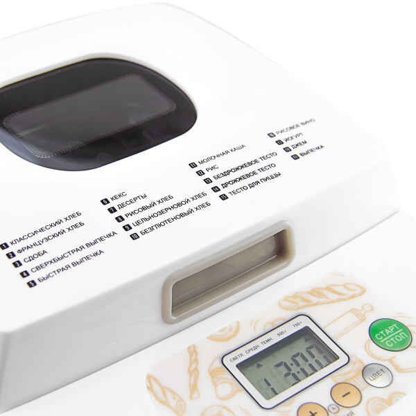 Хлебопечь Galaxy GL 2701 позволяет печь буханки весом до 0.75 кг. Вы можете выбрать цвет корочки по своему вкусу. Устройство оснащено 19 автоматическими программами, которые позволяют выпекать пшеничный, цельнозерновой и французский хлеб, сладкую выпечку, в том числе кексы, а также безглютеновую, бездрожжевую и хлеб из муки грубого помола. Среди такого многообразия каждый сможет выбрать вариант по вкусу.