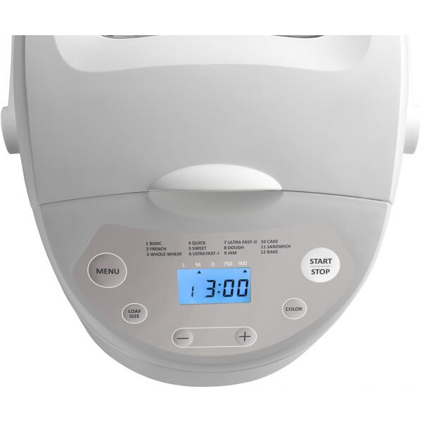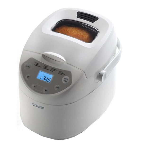 Дизайн: Хлебопечь Gorenje BM910W представлена в классическом белом цвете. Жидкокристаллический дисплей с голубой подсветкой отображает текущие настройки.