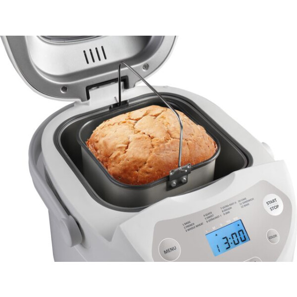 Функционал: Прибор отличается многофункциональностью — он не только выпекает хлеб разных видов, но и замешивает сдобное тесто, варит ягодный джем. Съемная форма с антипригарным покрытием легко вынимается и моется. Смотровое окошко позволяет контролировать все этапы работы техники.