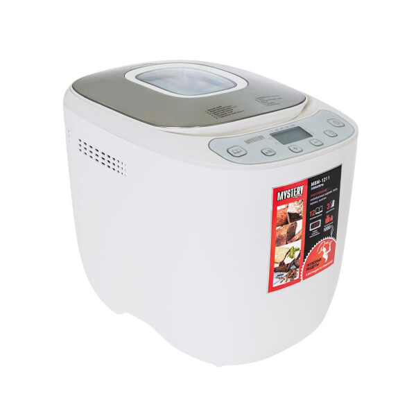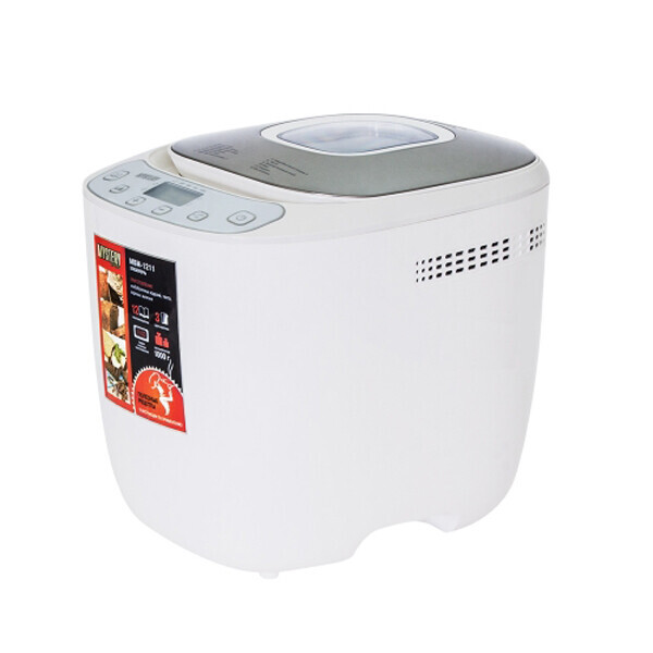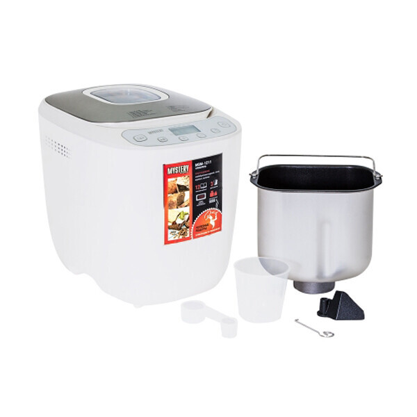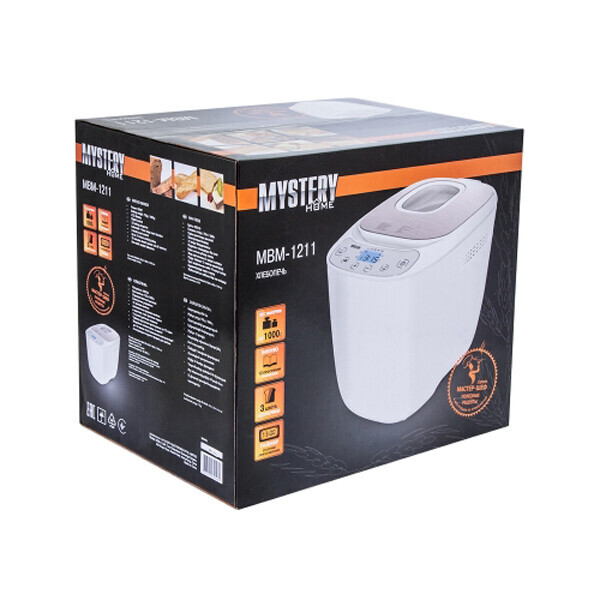 MYSTERY MBM-1211 мощностью 650 Вт может выпекать хлеб весом 750 и 1000 г. С хлебопечкой MYSTERY приготовление хлеба не требует никаких усилий, достаточно просто поместить в нее ингредиенты и выбрать необходимую программу выпечки, все остальное печь сделает сама. Особенностью хлебопечей MYSTERY является наличие специального таймера, который позволяет отложить начало приготовления. Это означает, что, засыпав ингредиенты с вечера и установив отсрочку по таймеру, можно получить к утреннему завтраку прекрасный душистый свежий хлеб.