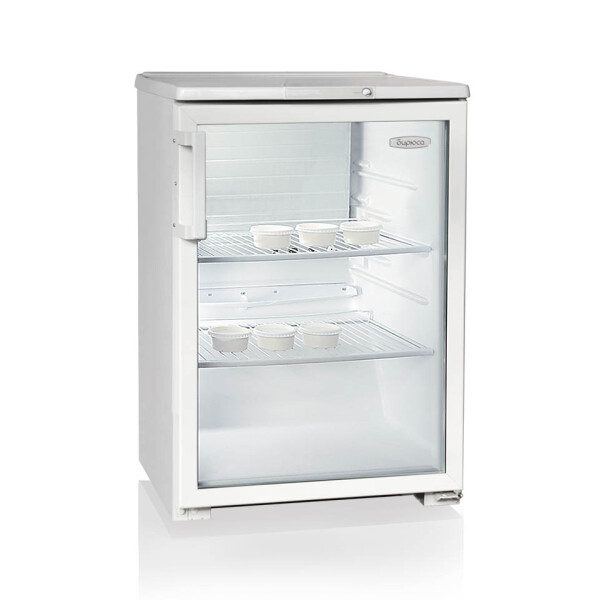 Холодильная витрина Бирюса Б 152 отлично впишется в любое помещение. Она имеет нейтральный белый цвет и для удобства загрузки предусматривает 2 полки, благодаря чему вы сможете хранить там прохладительные напитки. Не смотря на габариты и компактные размеры. холодильная витрина имеет немалый внутренний объем в 152 литра. Потребление энергии за сутки при температуре окружающего воздуха 24C (не более) составляет 2 кВт*ч.