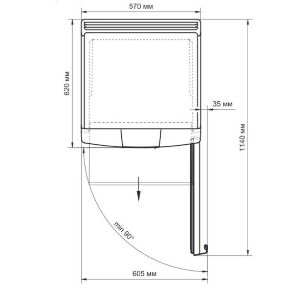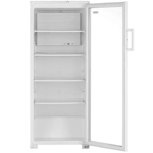Витрина характеризуется однокамерной конструкцией и оснащена 4 металлическими полками с возможностью регулировки по высоте.