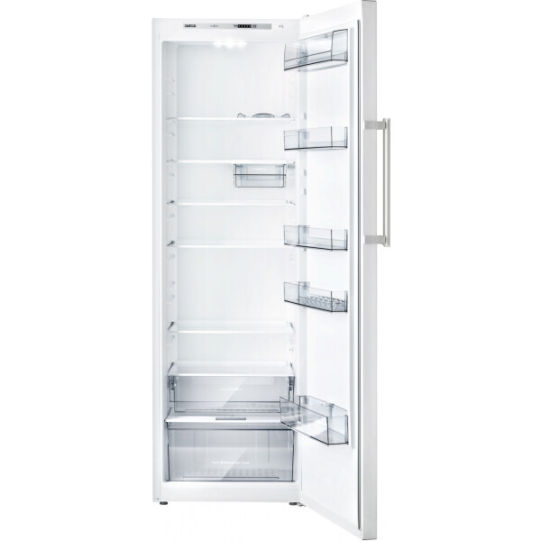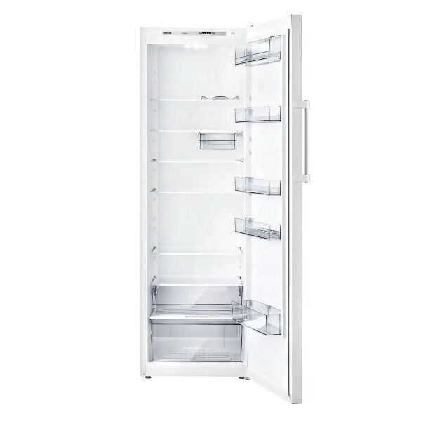 На двери холодильника установлена емкость нижняя с ограничителем для бутылок из ударопрочного пластика. Ограничитель предотвратит опрокидывание бутылок при открывании и закрывании двери