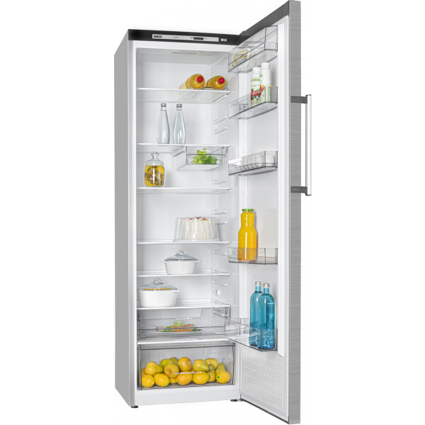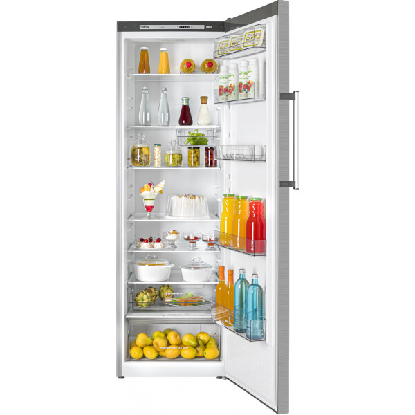 В единственной камере расположено 5 полок из закаленного стекла. На двери установлено 5 емкостей из ударопрочного пластика, в том числе емкость нижняя с ограничителем для бутылок и емкость верхняя с крышкой.