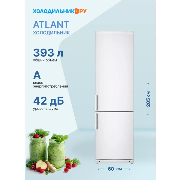 ATLANT ХМ 4026-000 изготовлен из прочного материала, предотвращающего повреждение системы, стандартного белого цвета. Высота равна 205 см, ширина – 60 см, а глубина – 63 см. Конструкция предусматривает один встроенный процессор, современную систему защиты от несанкционированного отключения электроэнергии, инновационное механическое управление. Климат-класс холодильника – N, а по энергопотреблению модель относится к классу А.