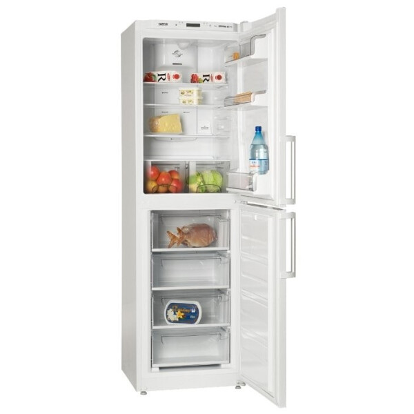 Полезный объем ATLANT ХМ 4423-000 N составляет 292 л, благодаря чему в его контейнерах и на полках можно разместить действительно большой объем продуктов. К тому же, можно не беспокоиться, что полки треснут в результате большой нагрузки. Они изготовлены из специального крепкого стекла, которое способно выдерживать даже значительный вес. Помимо полок в комплектацию холодильного отделения входят два контейнера для фруктов и овощей и три наддверных кармана для яиц и напитков.