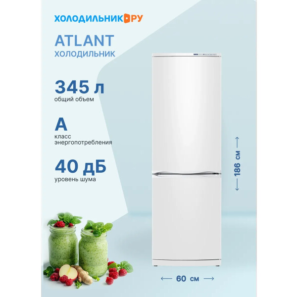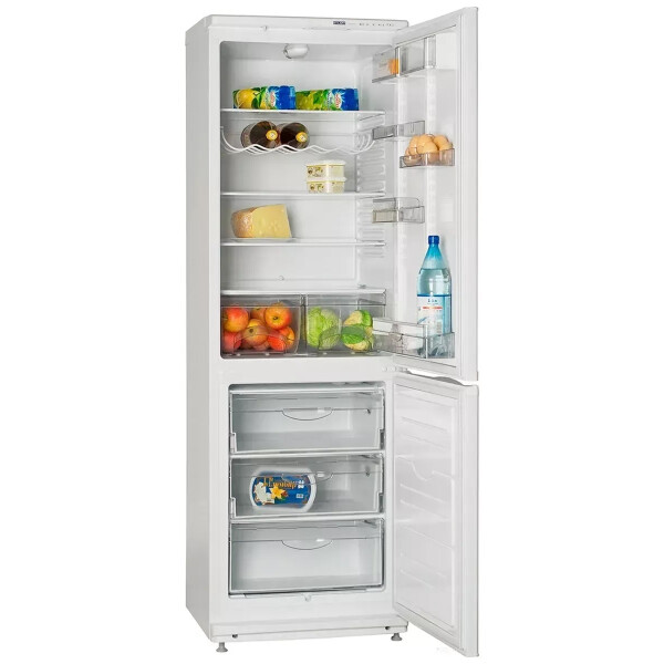 Достаточно большой полезный объем морозильной камеры (96 л) позволяет поместить в ней необходимое количество продуктов. Минимальная температура, поддерживаемая в морозильнике, достигает минус 18 градусов. ATLANT ХМ 6021-031 представляет собой довольно экономичную модель двухкамерного холодильника, которая расходует 374 кВтч в год. Потребляемая максимальная мощность – 120 Вт.