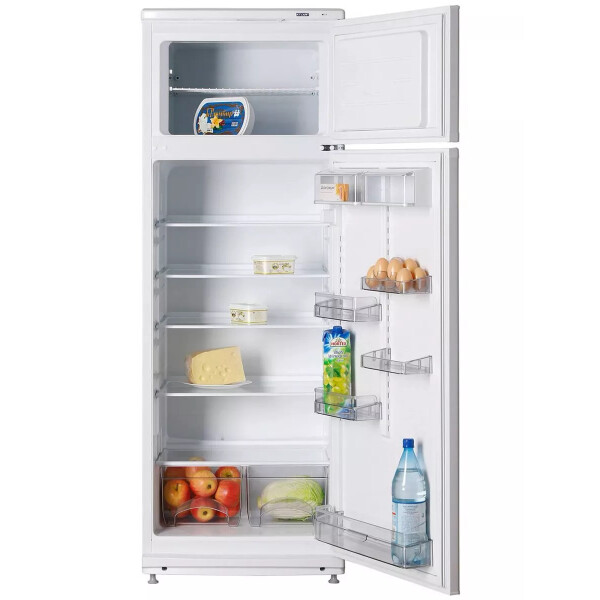 Холодильник ATLANT МХМ 2826-90 оборудован верхней морозилкой объёмом 53 литра. Морозильная камера весьма компактная, однако в ней помещаются все необходимые продукты, которым требуется глубокая заморозка. Модель холодильника изготовлена из диэлектрического пластика, предохраняющего внутреннюю конструкцию агрегата от повреждений при транспортировке и установке.
