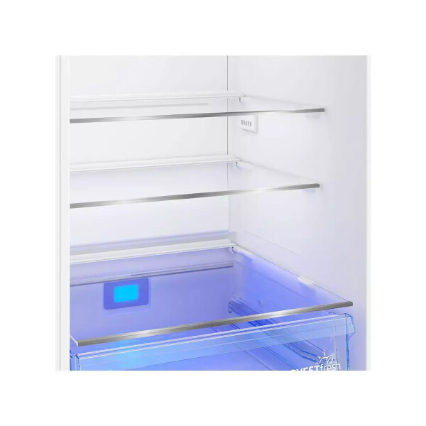 Холодильник Beko B1DRCNK362HXBR имеет две камеры для хранения продуктов. Модель оснащена встроенной светодиодной лампой, за счет которой содержимое видно даже в темное время суток. Устройство с системой No Frost не нужно размораживать. Для удаления загрязнений оптимально использовать воду и специальное дезинфицирующее средство. Внутри холодильной камеры есть полки, которые произведены из закаленного стекла. Материал не подвержен сколам, трещинам и другим повреждениям при значительных нагрузках. Для хранения овощей и фруктов оптимально использовать зону свежести с отдельной панелью управления для выбора температурного режима.