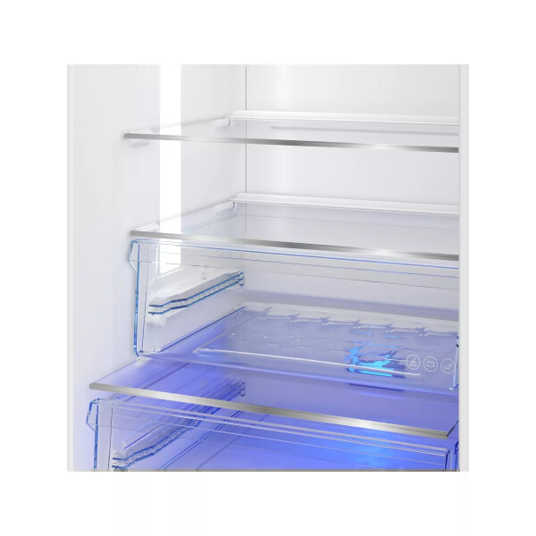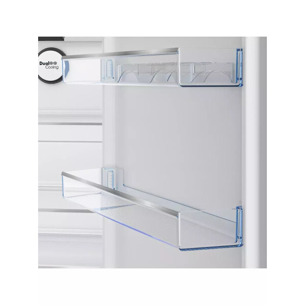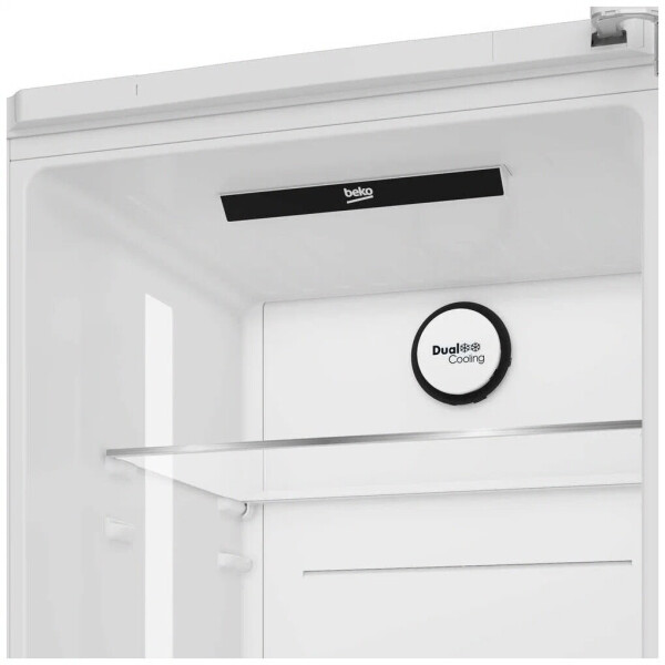 Высокий двухкамерный холодильник имеет класс энергопотребления А+ и электронную систему управления, двухконтурную систему охлаждения NoFrost Dual Cooling (Ноу Фрост) и энергосберегающий режим Отпуск.
