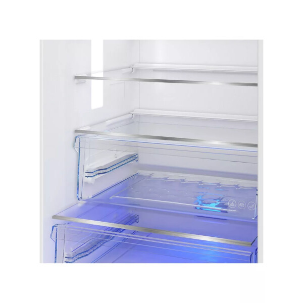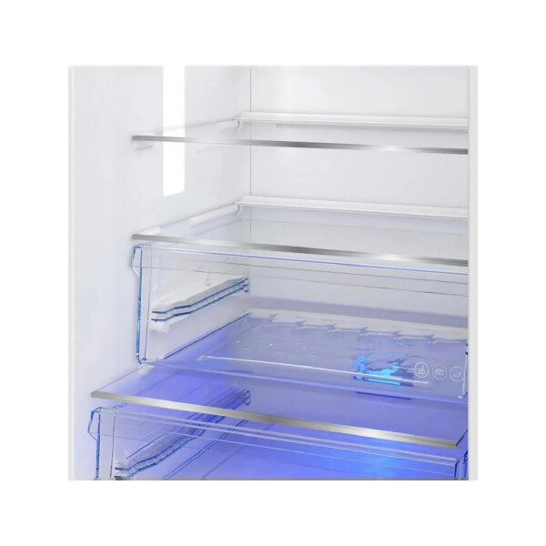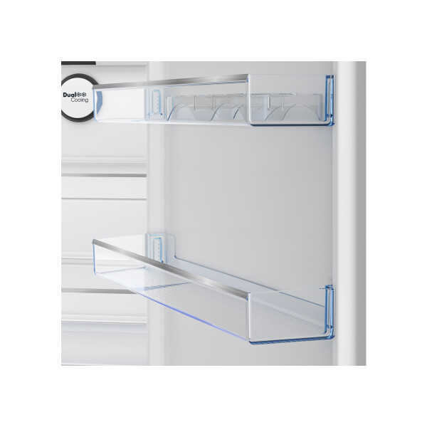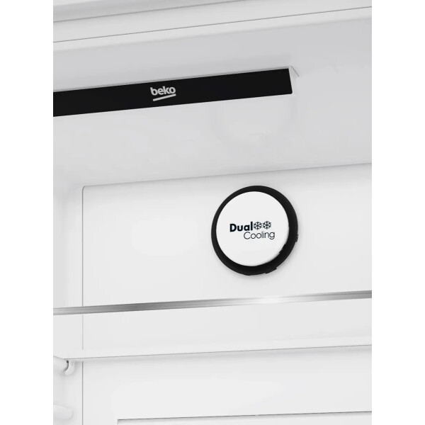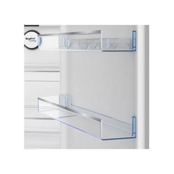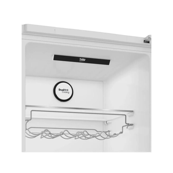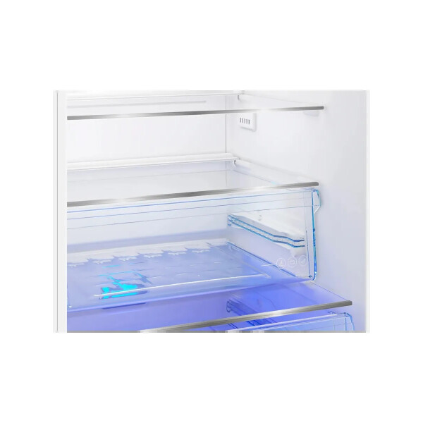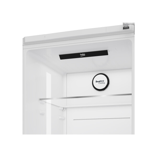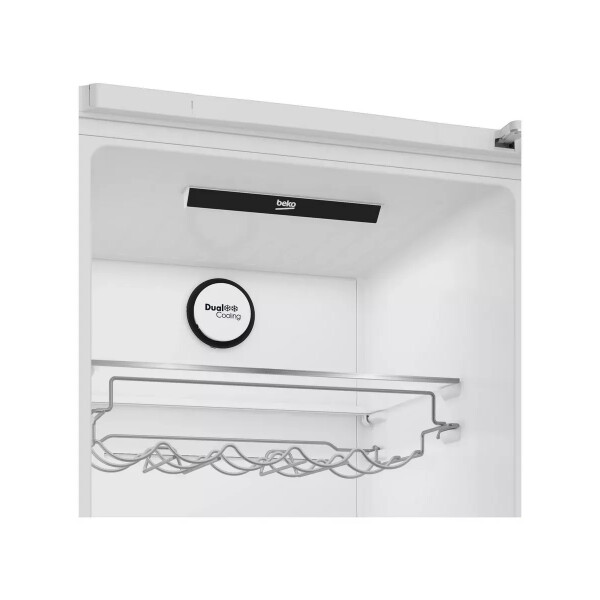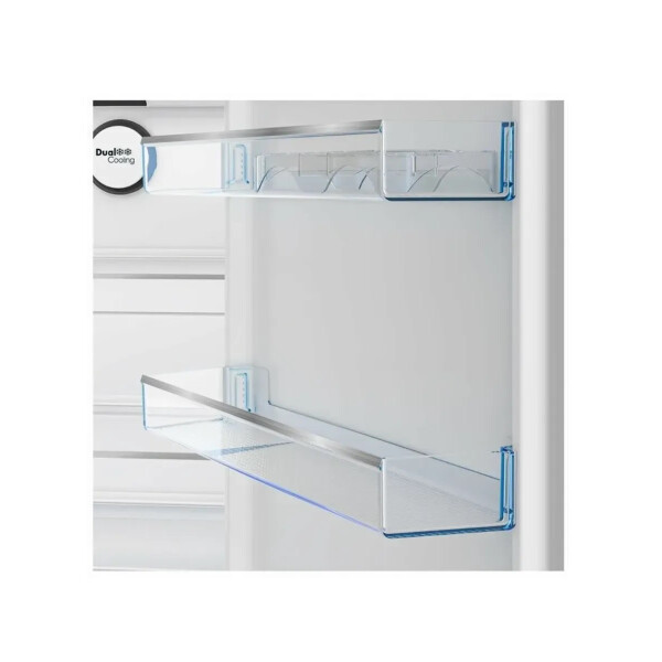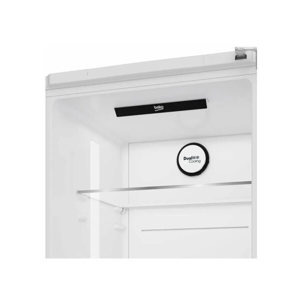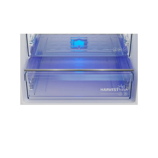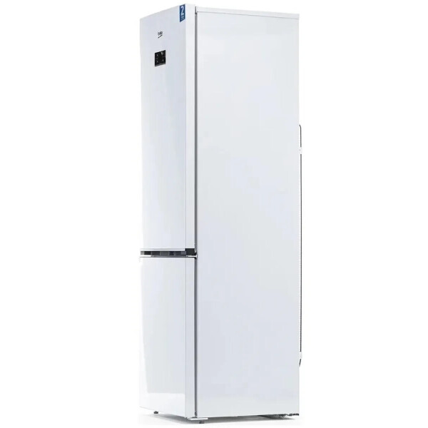 Белый двухкамерный холодильник имеет высоту 2 метра, удобный цифровой дисплей, электронное управление и энергосберегающий режим Отпуск. Холодильник оснащен двухконтурной системой охлаждения NoFrost Dual Cooling (Ноу Фрост), которая разделяет воздушные потоки между холодильной и морозильной камерами для лучшего охлаждения без смешивания запахов и образования льда на стенках. В холодильной камере расположены отделение для свежих фруктов и овощей с технологией трехцветной подсветки HarvestFresh и специальный отсек с температурой 0-3 С для более долгого хранения свежего мяса, рыбы и молочных продуктов.