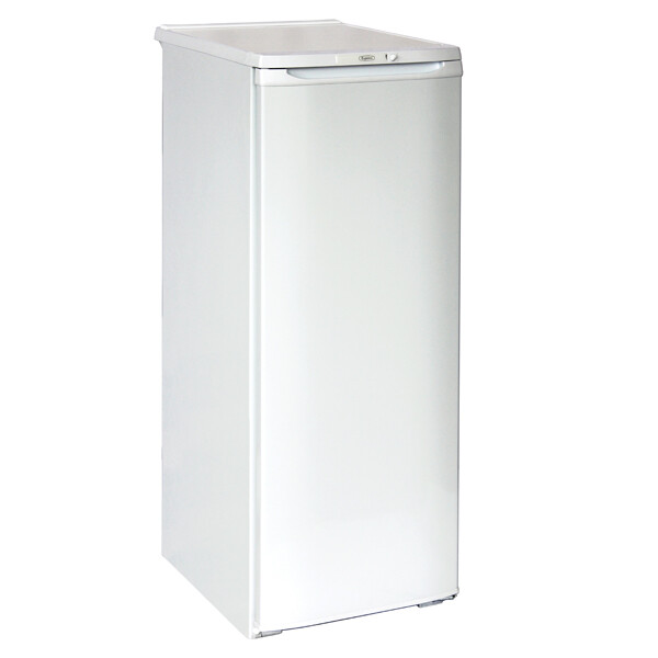 Холодильник Бирюса 110 состоит из двух камер, морозильник располагается в верхней части. Это практичная и удобная в использовании модель. Корпус произведен из качественного, прочного пластика и оформлен в белой расцветке. Общий полезный объем представленного устройства составляет 180 л. Этот холодильник отличается экономичным энергопотреблением, что подтверждает присвоенный ему А-класс.