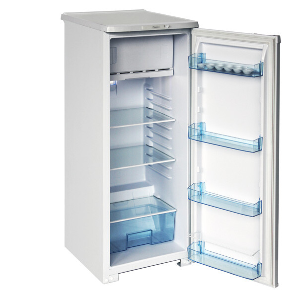 Внутри холодильника Бирюса 110 расположены вместительные стеклянные полки. Дверцу при необходимости можно перевесить. Размораживание холодильной камеры производится капельным способом, а разморозку морозилки необходимо производить вручную. Уровень шума от работающего устройства не превышает 40 дБ.