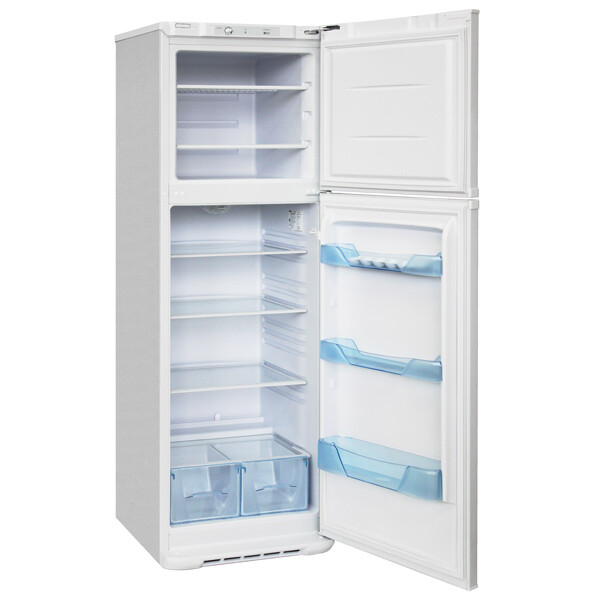 Холодильник Бирюса 139 имеет удобную конструкцию. Для установки стеклянных полок внутри холодильной камеры предусмотрено несколько уровней. Морозильная камера также имеет 2 полки. Белый фасад холодильника с металлическим покрытием выглядит очень стильно.