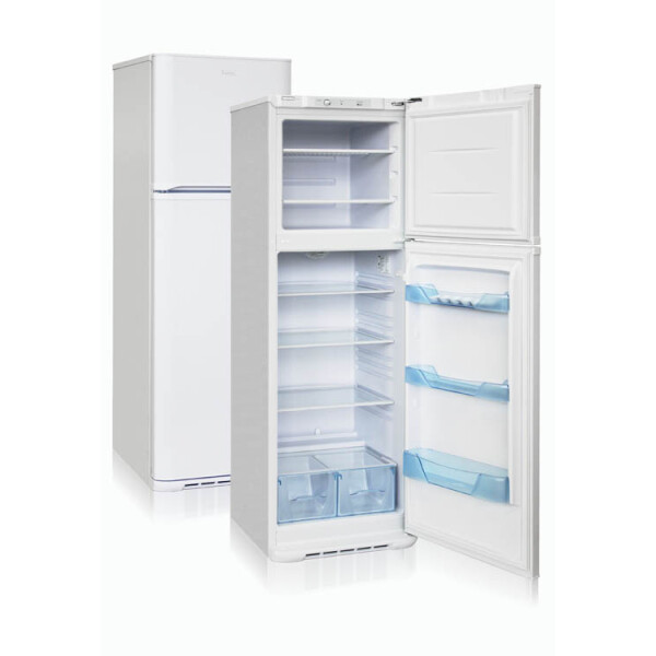 Холодильник Бирюса Б-139 имеет удобную конструкцию. Для установки стеклянных полок внутри холодильной камеры предусмотрено несколько уровней. Морозильная камера также имеет 2 полки. Белый фасад холодильника с металлическим покрытием выглядит очень стильно.