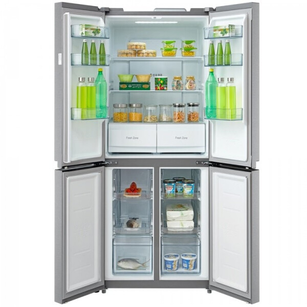 Собранный в корпусе серого цвета холодильник многодверный Бирюса CD 492 I располагает интуитивно понятной сенсорной панелью управления.