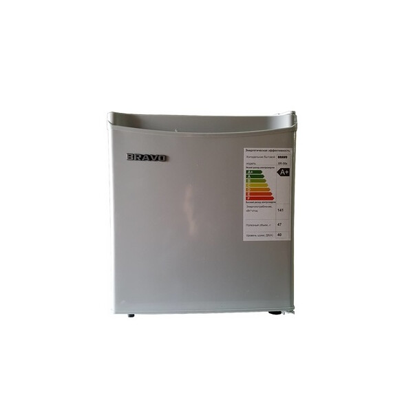 Холодильник Bravo XR-50 с серебристым корпусом относится к числу наиболее компактных моделей и имеет внутренний объем всего 47 литров. 44 литра занимает его холодильная камера, а 3 литра приходится на миниатюрную морозилку, позволяющую заморозить небольшое количество полуфабрикатов или мясных изделий. Камеры имеют общую дверцу и оригинальную компоновку, при которой морозильная камера находится внутри холодильной, располагаясь в верхней ее части.