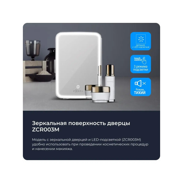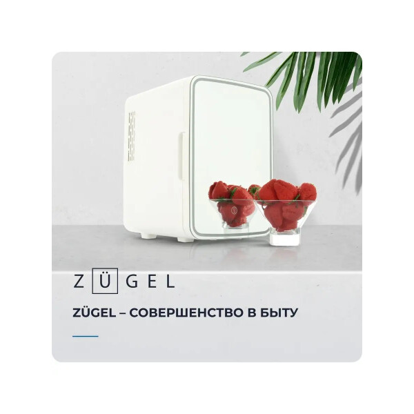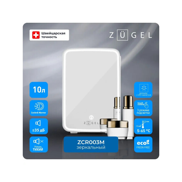 Модель с зеркальной дверцей и LED-подсветкой удобно использовать при проведении косметических процедур и нанесении макияжа. Универсальный термоэлектрический холодильник Zugel с передовой технологией поддержания температуры предназначен для хранения косметики с ограниченным сроком годности. Также подходит для охлаждения пищевых продуктов.