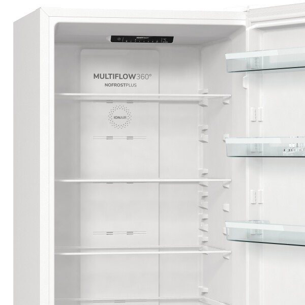 Gorenje NRK 6201 EW4 имеет ряд преимуществ. Умная система поддерживает постоянную температуру в холодильнике независимо от того, как часто вы открываете дверцу. Она непрерывно следит и анализирует, как и когда вы пользуетесь холодильником, а также управляет температурой, объемный контейнер помогает сохранить питательные вещества и свежесть овощей и фруктов, а пониженная температура увеличивает срок их хранения, благодаря инновационной конструкции и гладкому внутреннему покрытию холодильники Gorenje GardenFresh чрезвычайно легко чистить, чтобы гарантировать полезность и безопасность продуктов. На случай вашего длительного отсутствия можно установить энергосберегающий режим работы холодильника, так как дверцы будут все время закрыты. Функция FastFreeze быстро замораживает продукты при -24С, чтобы сохранить все полезные вещества. Примерно через 2 дня функция автоматически выключается, и температура морозильного отделения возвращается к исходному значению. Ионизатор IonAir создает внутри прибора отрицательно заряженные ионы, которые равномерно распределяются по всему холодильному отделению с помощью новой системы вентиляции MultiFlow 360. Воздух, обогащенный анионами, сохраняет вкус продуктов и удаляет неприятные запахи.