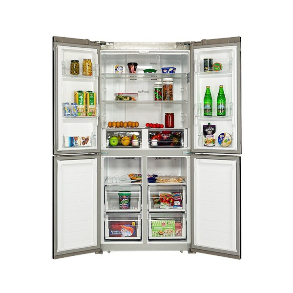 Технологичные, современные холодильники HIBERG с повышенной вместительностью избавят вас от лишних походов в магазин. Стильный дизайн холодильника позволит ему вписаться в любую обстановку и сделает Вашу кухню еще прекрасней.Холодильник очень вместителен, в нем много места для охлаждения и заморозки продуктов любой формы и размера. Он имеет четыре двери, которые широко открываются, поэтому Вы можете охватить всё содержимое одним взглядом.