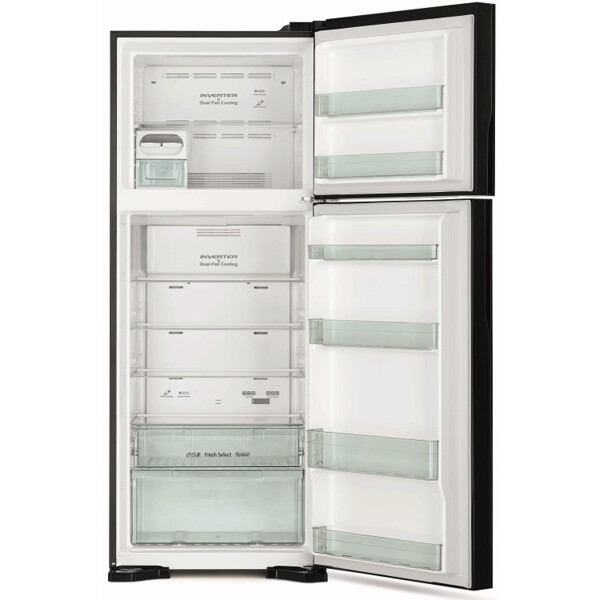 Холодильник Hitachi R-VG542 PU7 GPW представлен в цвете белое стекло. Прибор оснащён ледогенератором, который можно переместить из морозильного отделения в холодильное, или вынуть совсем, что обеспечивает эффективность использования пространства хранения.